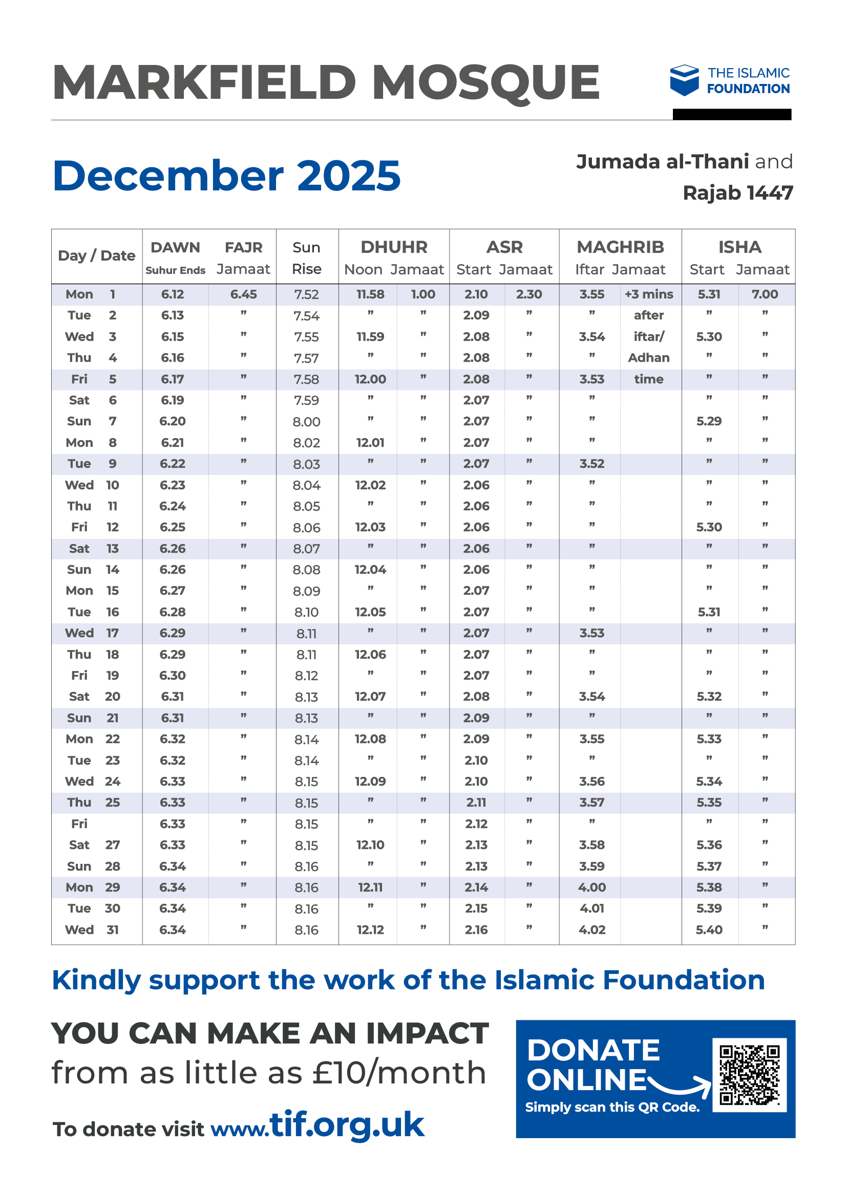 | Download Dec 2025 Prayer timetable - PDF File. |